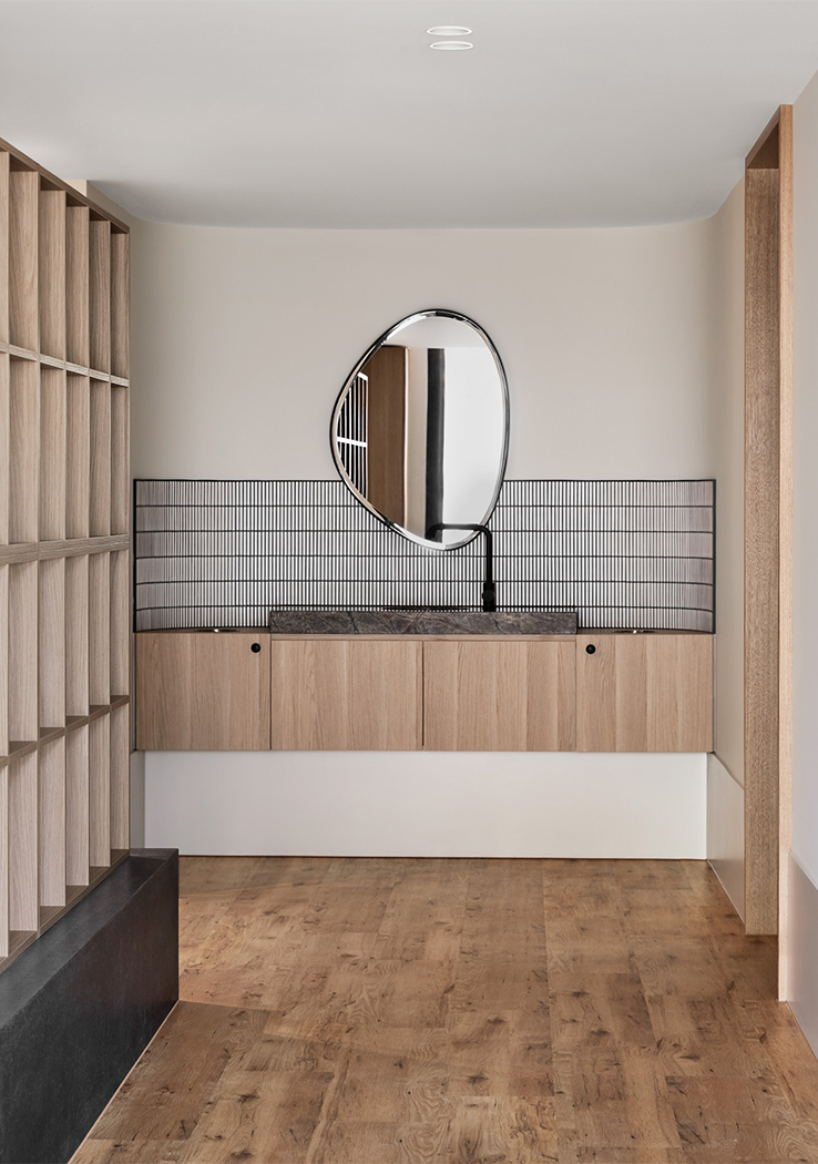 A rigorously detailed floor plan underpins a day spa on one side of the retreat, with ice and steam contrast therapy, hydrotherapy, body and face treatment rooms and a yoga studio-offering holistic wellness. On the other side, is a spinal clinic including osteopathy treatment rooms and a Pilates studio. Ensuring staff have easy back of house access to all areas of the retreat, was key in ensuring efficiency and a seamless client experience.
