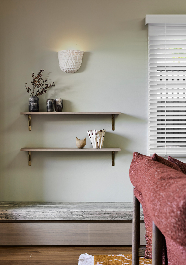 incorporates a vibrant ‘summer’ room with sandy beach hues and a cosy ‘winter’ room boasting deep eucalypt walls and a central fireplace.