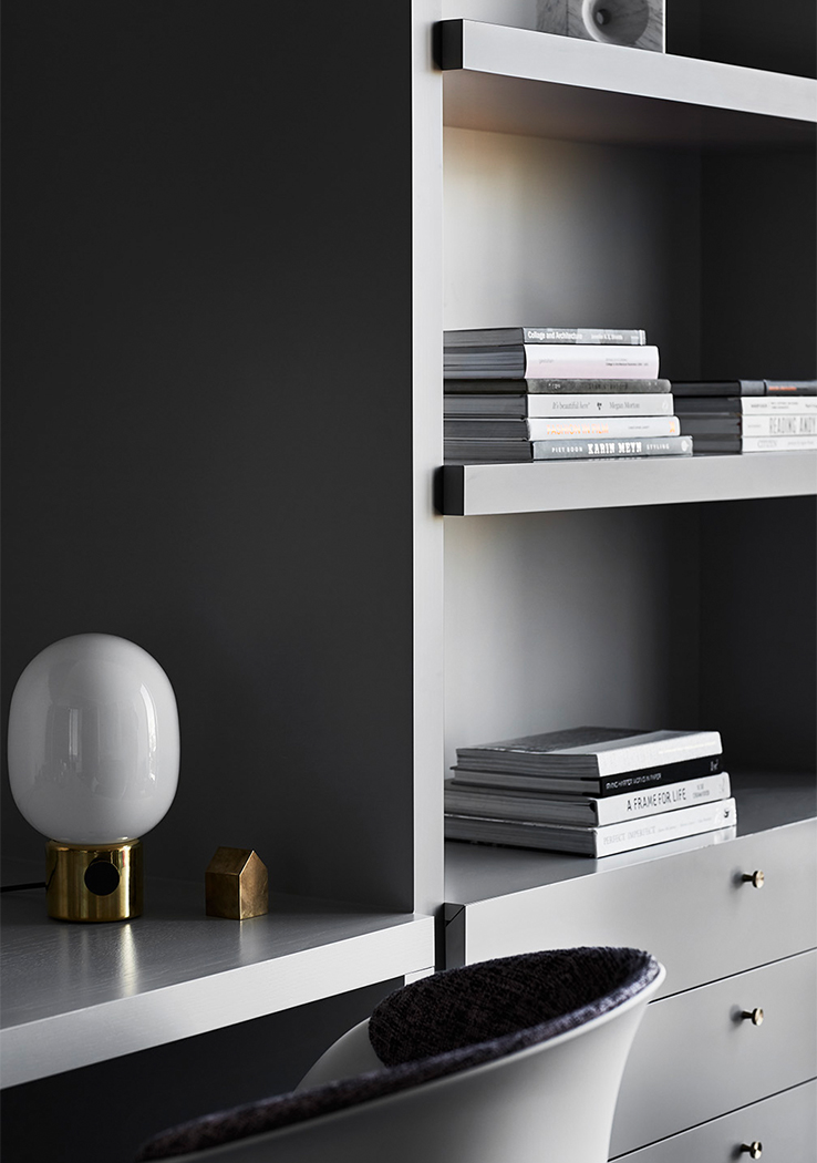 The colour palette has been built around the judicious application of striking, bold tones: navy blue carpets, doors and skirting provide warmth and drama without constraining the volumes.