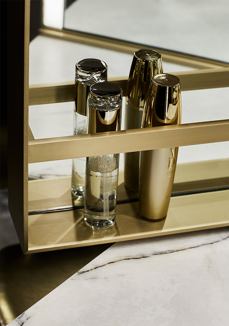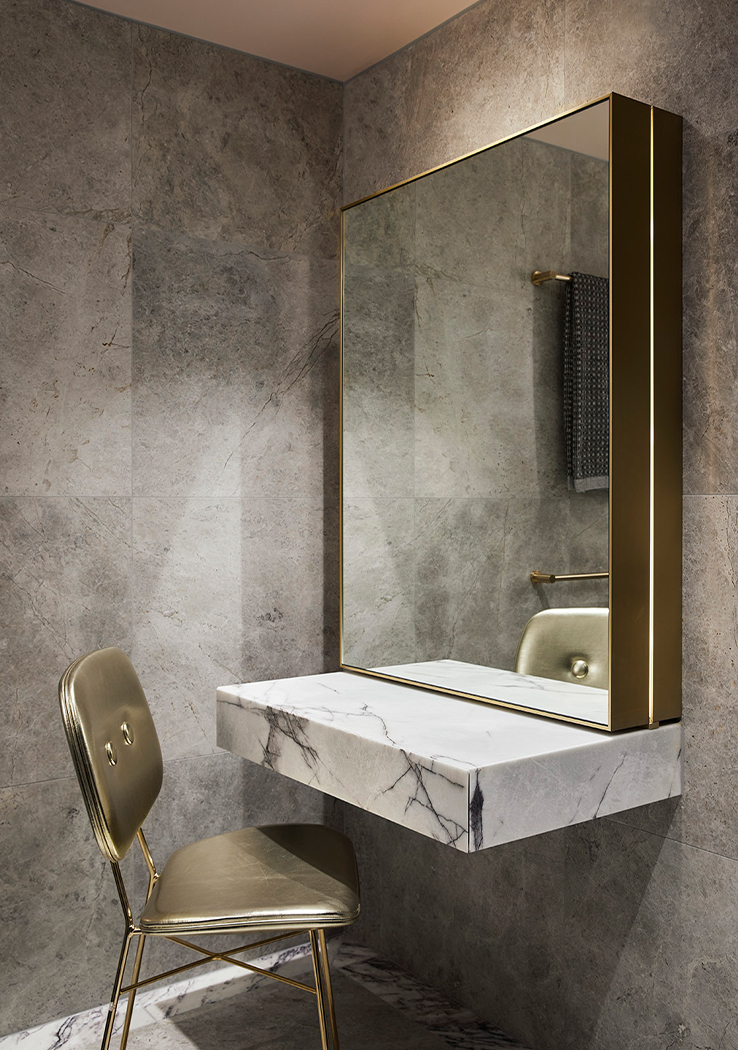 Inspired by the idea of a jewelry box, Charter Hall Worldwide created a compact and fabulous space filled with notable elements and hidden surprises concealed within the apartment’s surfaces.